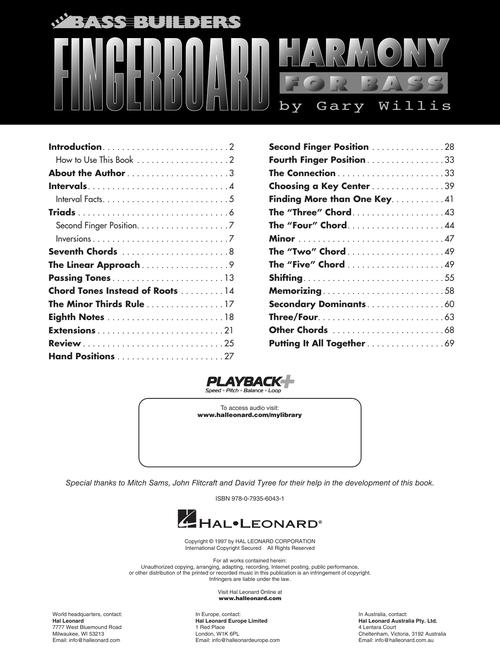 A comprehensive source for learning the theory and geometry of the bass fingerboard by one of today's leading players and instructors. Includes: 99 audio examples and exercises, hand positions, key centers, the linear approach, and more! Audio features Gary Willis demonstrating 99 examples and exercises. It's accessed online for download or streaming and includes PLAYBACK+, a multi-functional audio player that allows you to slow down audio without changing pitch, set loop points, change keys, and pan left or right.