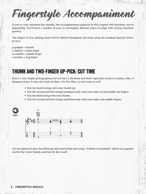 If you want to take your ukulele playing to the next level, you need to start using your fingers! The sample songs and patterns found in this book with online audio access will get you started both playing solos and accompaniment - fingerstyle. You will learn how to use your picking-hand fingers and thumb to play chord melody solos on the ukulele, mixing chords and single notes like a pianist or a guitarist. You will also learn fingerpicking accompaniment patterns for a variety of textures and rhythmic grooves. Because fingerstyle playing works for all genres, folk, jazz, blues and country songs are included in this collection! Songs include: After You've Gone · Aloha Oe · Amazing Grace · C.C. Rider · I Ride an Old Paint · The Red River Valley · St. Louis Blues · Take Me Out to the Ball Game · The Wabash Cannon Ball · Will the Circle Be Unbroken · and more.