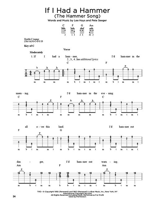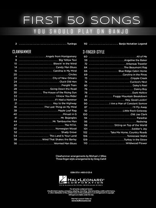 If you're new to the 5-string banjo, you're probably eager to learn some songs. This book provides easy-to-read banjo tab, chord symbols and lyrics for the most popular songs beginning banjo players like to play. Players with years of experience will also discover tunes never before arranged for banjo. Explore clawhammer and three-finger-style banjo in a variety of tunings and capoings with this one-of-a-kind collection of master-crafted arrangements. Songs include: Angel from Montgomery · Blowin' in the Wind · Carolina in My Mind · Cripple Creek · Danny Boy · The House of the Rising Sun · I Am a Man of Constant Sorrow · Maple Leaf Rag · Mr. Tambourine Man · Shady Grove · Take Me Home, Country Roads · This Land Is Your Land · Wildwood Flower · and many more.