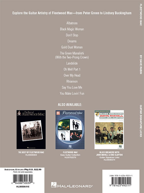 Explore the guitar artistry of Fleetwood Mac - from Peter Green to Lindsey Buckingham - with this book/CD pack that will teach you 12 of the signature licks from their biggest hits: Albatross · Black Magic Woman · Don't Stop · Dreams · Gold Dust Woman · The Green Manalishi · Landslide · Oh Well Part 1 · Over My Head · Rhiannon · Say You Love Me · You Make Lovin' Fun.