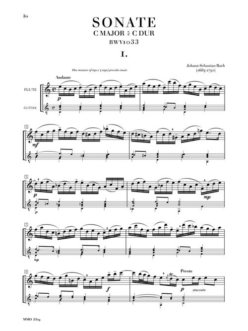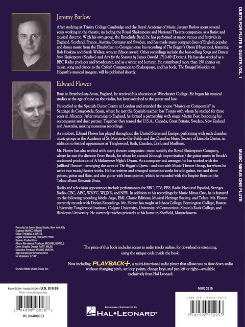 Performed by Jeremy Barlow, flute Accompaniment: Ed Flower, guitar The first in a two-album series for flute and guitar conceived and produced by noted guitarist Ed Flower. This album offers a broad range of musical experience spanning the Renaissance and Baroque eras. Ed accompanies Jeremy Barlow in each duet. Become part of the most felicitous duet-sound in music, the flute and guitar. Includes a complete music score and professionally-recorded audio including a complete performance in stereo, and a second stereo performance minus the solo part for practice purposes. The audio is accessed online using the unique code inside each book and can be streamed or downloaded. The audio files include PLAYBACK+, a multi-functional audio player that allows you to slow down audio without changing pitch, set loop points, change keys, and pan left or right.
