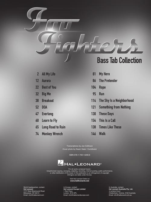This collection features 20 of the Foo Fighter's most popular hits from their long career transcribed note-for-note in notes and tab with lyrics. Songs include: All My Life · Aurora · Best of You · Big Me · Breakout · DOA · Everlong · Learn to Fly · Long Road to Ruin · Monkey Wrench · My Hero · The Pretender · Rope · Run · The Sky Is a Neighborhood · Something from Nothing · These Days · This Is a Call · Times like These · Walk.