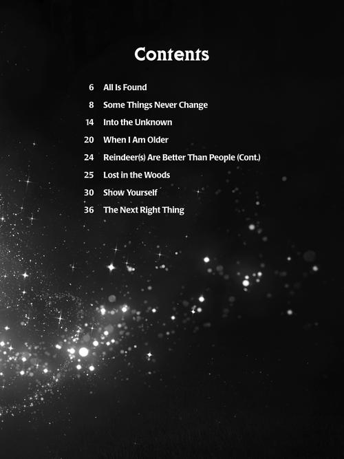 This songbook features eight songs from Disney's latest blockbuster arranged with melody, lyrics, and chord diagrams for standard G-C-E-A tuning. Songs include: All Is Found · Into the Unknown · Lost in the Woods · The Next Right Thing · Reindeer(s) Are Better Than People (Cont.) · Show Yourself · Some Things Never Change · When I Am Older. Also includes black and white photos from the motion picture!