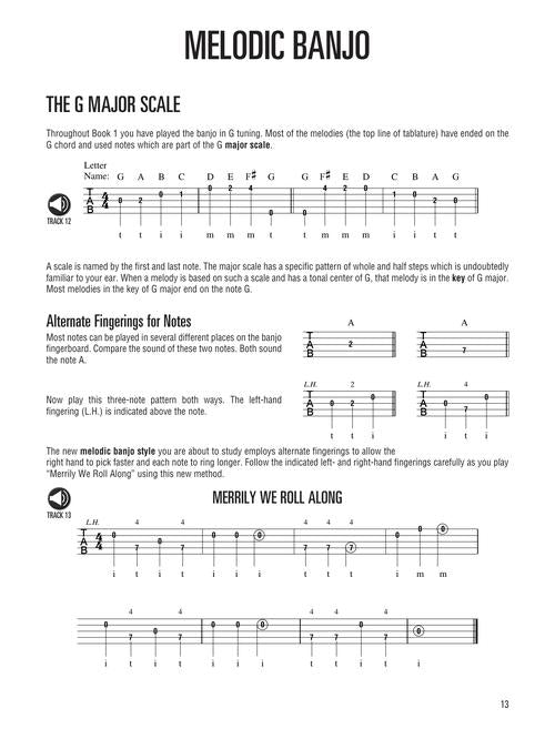 Newly updated and revised, this easy-to-use beginner's guide is a continuation of the banjo basics and techniques taught in Book 1. The material in Book 2 not only reinforces and strengthens Book 1 instruction, but also features many new songs, techniques and rolls to learn and play. Covers: right-hand rolls and patterns; playing back-up; melodic style banjo; fiddle tunes & reels; solos and licks; new hammers, pull and slides; banjo chimes; scales & modes; using a capo; and more! The accompanying audio contains 63 tracks of full-band demos for every song in the book! Audio is accessed online using the unique code inside the book and can be streamed or downloaded. The audio files include PLAYBACK+, a multi-functional audio player that allows you to slow down audio without changing pitch, set loop points, change keys, and pan left or right.