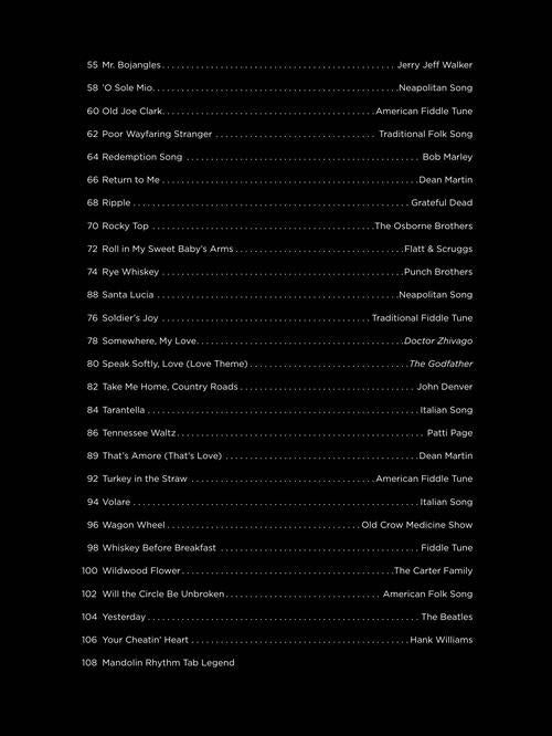 A fantastic collection of 50 accessible, must-know favorites for the beginner who's learned enough to start playing popular songs! This book features a combo of tab, chords, and lyrics for: Amazing Grace · Blue Eyes Crying in the Rain · Crazy · Cripple Creek · Folsom Prison Blues · Friend of the Devil · Going to California · Hallelujah · Ho Hey · I Am a Man of Constant Sorrow · I Walk the Line · I'll Fly Away · Losing My Religion · Maggie May · Mr. Bojangles · Redemption Song · Ripple · Rocky Top · Take Me Home, Country Roads · Tennessee Waltz · Wagon Wheel · Wildwood Flower · Yesterday · Your Cheatin' Heart · and many more.