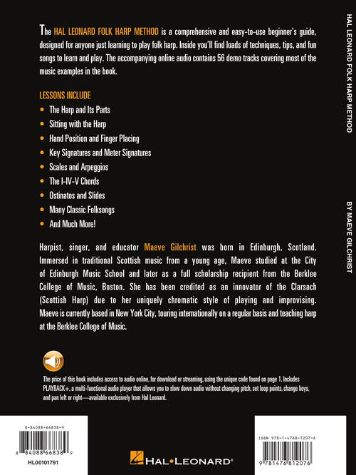 The Hal Leonard Folk Harp Method is a comprehensive and easy-to-use beginner's guide, designed for anyone just learning to play folk harp. Inside you'll find loads of techniques, tips, and fun songs to learn and play. The accompanying CD contains 56 demo tracks that cover most of the music examples in the book. Covers: the harp and its parts; sitting with the harp; hand position and finger placing; key signatures and meter signatures; scales and arpeggios; the I-IV-V chords; ostinatos and slides; many classic folksongs; and much more!