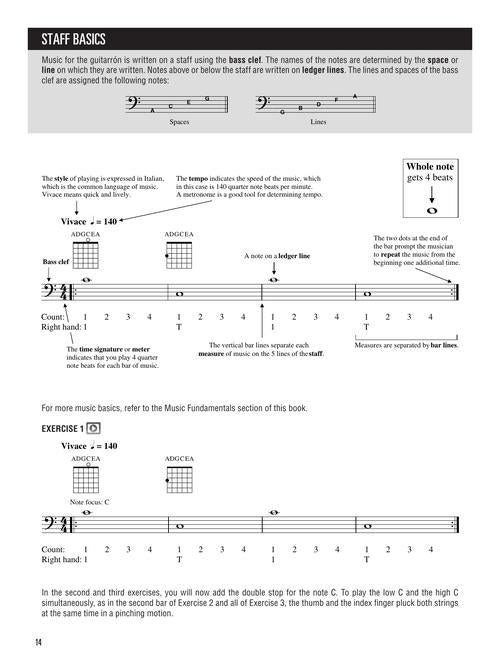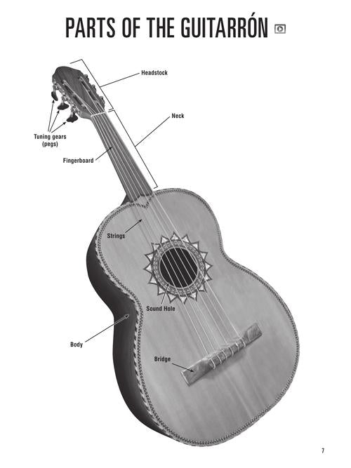 This comprehensive method for beginners is designed for anyone just learning to play the Mexican six-string bass guitar known as the guitarrón. It serves as an introduction to the instrument, its techniques, reading music, and teaching you how to play with fun songs and video lessons available online for download or streaming. Topics covered include: tuning · left- and right-hand technique · notes on the fingerboard · open-string notes · stopped notes · scales · accompaniment styles · and more.