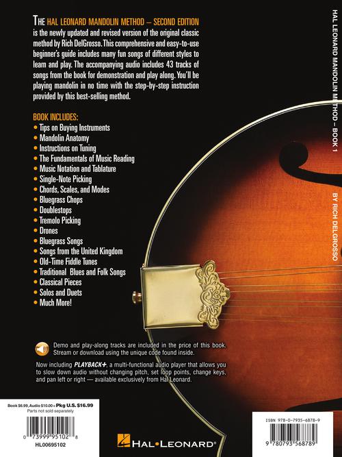 Noted mandolinist and teacher Rich Del Grosso has authored this excellent mandolin method that features great playable tunes in several styles (bluegrass, country, folk, blues) in standard music notation and tablature. The audio features play-along duets.