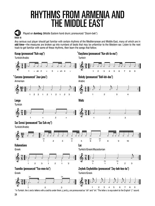 The purpose of this book and its accompanying audio is to give the student not only a method from which to learn the oud, but also an overview of the history, folklore and origins of this beloved ancient stringed instrument. This book teaches the fundamentals of standard Western music notation in the context of oud playing, and serves as an introduction for absolute beginners as well as those experienced on other instruments. The book covers: types of ouds, tuning the oud, playing position, how to string the oud, music notation, scales, chords, arpeggios, tremolo technique, studies and exercises, songs and rhythms from Armenia and the Middle East, and 25 audio tracks for demonstration and play along. The audio is accessed online using the unique code inside each book and can be streamed or downloaded. The audio files include PLAYBACK+, a multi-functional audio player that allows you to slow down audio without changing pitch, set loop points, change keys, and pan left or right.