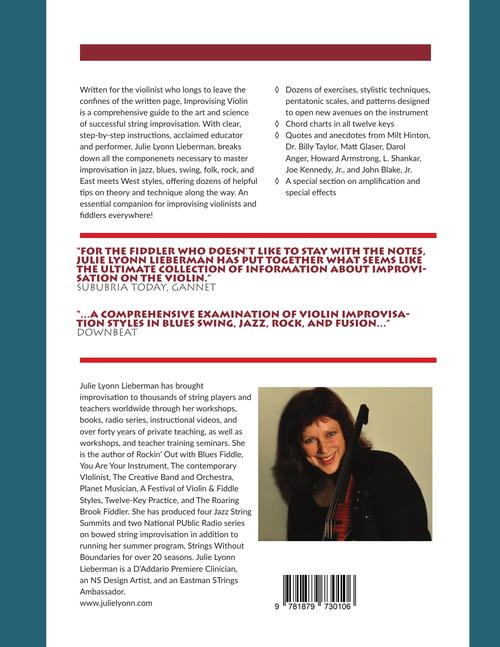 Written for the violinist who longs to leave the confines of the written page, Improvising Violin is a comprehensive guide to the art and science of successful string improvisation. With clear, step-by-step explanations and instructions, acclaimed teacher and performer Lieberman breaks down all of the components necessary to master improvisation in jazz, blues, swing, folk, rock and new age styles, offering dozens of helpful tips on theory and technique along the way. Preface by Darol Anger. Lieberman's book contains a wealth of information and is a gem of organization. - AMERICAN MUSIC TEACHER