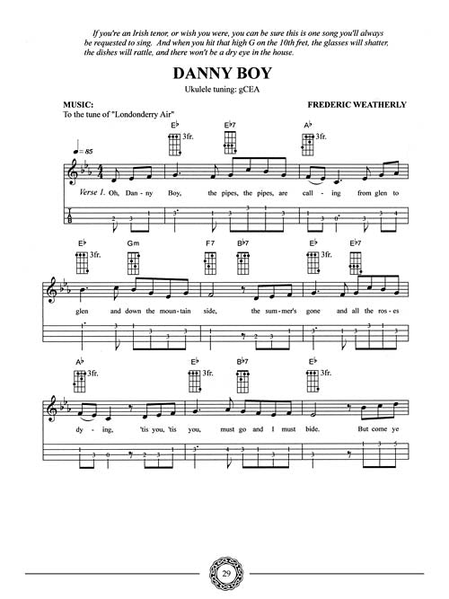 Shamrocks, shillelaghs and shenanigans ... they are all here in this collection of 55 fabulous Irish favorites! Each song is specifically arranged for the ukulele, with the melody in both standard notation and easy-to-read tab. Includes: An Irish Lullaby · The Band Played On · Cockles and Mussels · Danny Boy · The Irish Rover · McNamara's Band · Peg O' My Heart · The Rose of Tralee · and dozens more.