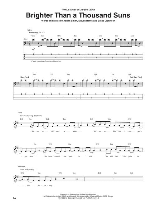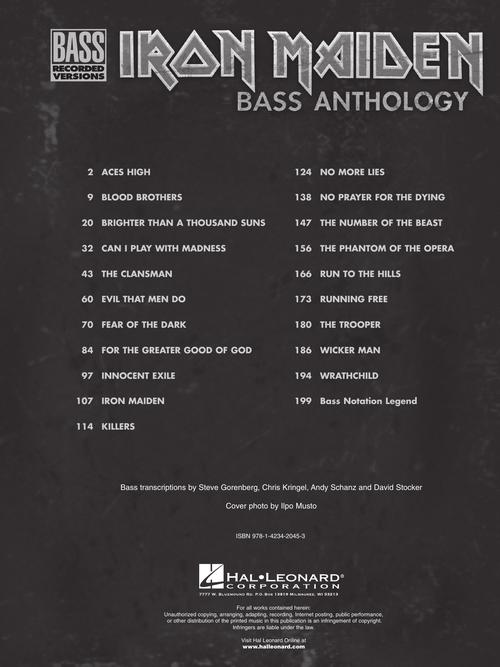 This book of note-for-note Steve Harris bass transcriptions is a must-have for any rock bassist. 20 classics, including: Aces High · Can I Play with Madness · Evil That Men Do · Fear of the Dark · Iron Maiden · No Prayer for the Dying · The Number of the Beast · Run to the Hills · Running Free · The Trooper · Wrathchild · and more.