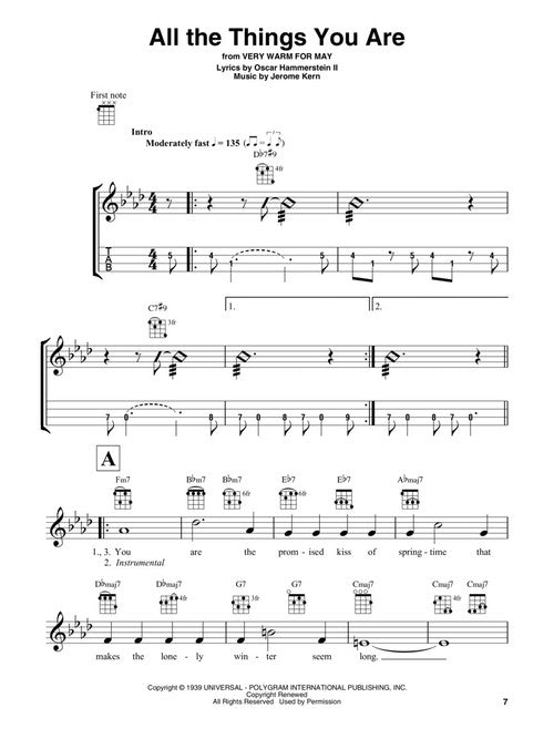 The Ukulele Play-Along series will help you play your favorite songs quickly and easily, with incredible backing tracks to help you sound like a bona fide pro! Just follow the written music, stream or download the online audio to hear how the ukulele should sound, and then play along with the separate backing tracks. The melody and lyrics are included in the book in case you want to sing, or to simply help you follow along. The online audio files include PLAYBACK+, a multi-functional audio player that allows you to slow down audio without changing pitch, set loop points, change keys, pan left or right, and more. This volume includes 8 of your favorite contemporary songs: After You've Gone · All the Things You Are · I Got Rhythm · Is You Is, or Is You Ain't (Ma' Baby) · Li'l Darlin' · Lullaby of Birdland · Pick Yourself Up · Take Five.