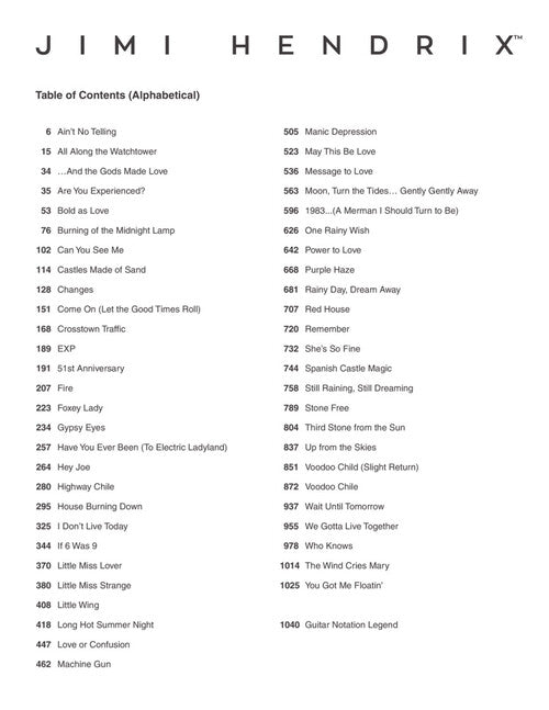 Experience the genius of one of rock 'n' roll's preeminent innovators - Jimi Hendrix! This special hardcover edition comes in a purple velvet protective case and features over 1,000 pages with full scores and lyrics to all 52 songs from the albums Are You Experienced, Axis: Bold as Love, Electric Ladyland, and Band of Gypsys. Each instrument has been transcribed faithfully from the original recordings, so you can dive deep into the compositions, lyrics, solos, and sounds of Jimi and his band. Guitar and bass parts are written in both standard notation and tab. A must-have for any serious Jimi Hendrix fan and collector!