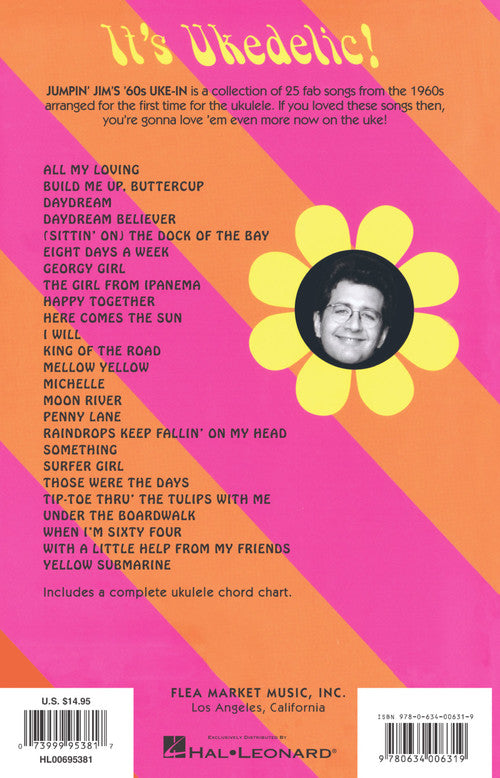 Jumpin' Jim's '60s Uke-In is a collection of 25 fab songs from the 1960s arranged for the very first time for ukulele. It includes lots of big Beatles hits (All My Loving · Eight Days a Week · Here Comes the Sun · Michelle · Penny Lane · Something · When I'm Sixty-Four · Yellow Submarine · & more) as well as other classic '60s tunes, such as: Daydream Believer · Georgy Girl · Happy Together · Moon River · Those Were the Days · and more. Features an appreciation by George Harrison, a foreword by Jumpin' Jim, a chord chart, and a groovy, psychedelic cover.