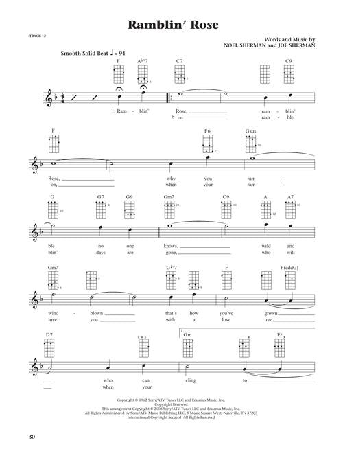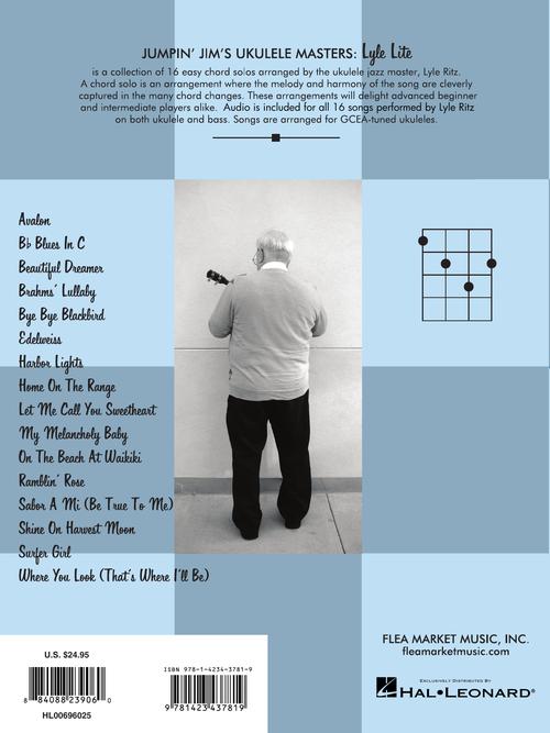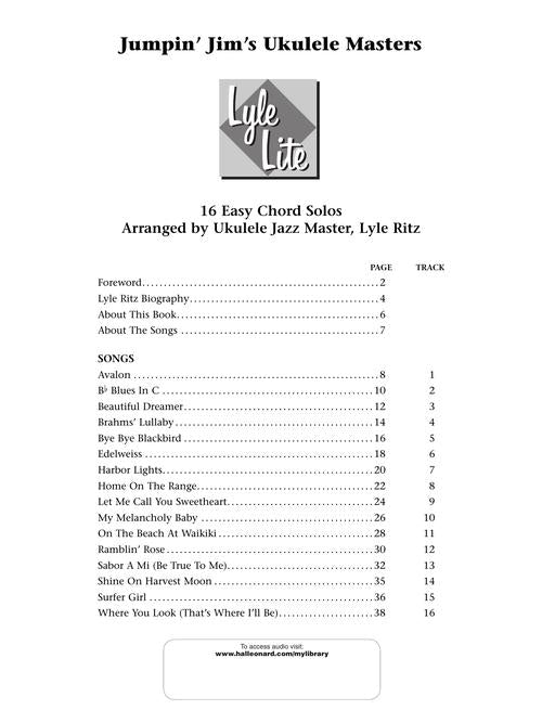 16 easy chord solos (both melody and harmony captured in the chord changes) arranged for GCEA-tuned ukuleles by jazz master Lyle Ritz. His arrangements will delight advanced beginners and intermediate players alike. The audio features all the songs performed by Lyle on both ukulele and bass. Includes: Beautiful Dreamer · Edelweiss · Let Me Call You Sweetheart · Ramblin' Rose · Surfer Girl · and more! The audio is accessed online using the unique code found in each book.
