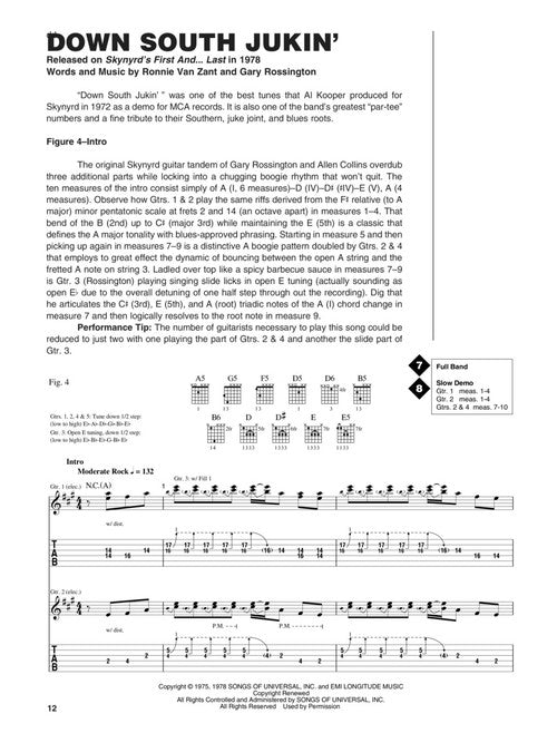 Explore the Southern rock mastery of Skynyrd's multiple guitar assault featuring Gary Rossington, Allen Collins, Ed King and Steve Gaines. The price of this book includes a unique code that provides access to audio tracks online, for download or streaming. The tracks include PLAYBACK+, a multi-functional audio player that allows you to slow down audio without changing pitch, set loop points, change keys, and pan left or right - available exclusively from Hal Leonard. Dave Rubin breaks down the licks from 15 tunes: Don't Ask Me No Questions · Free Bird · Gimme Three Steps · Saturday Night Special · Sweet Home Alabama · What's Your Name · more.