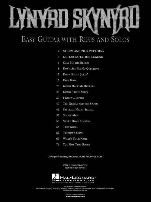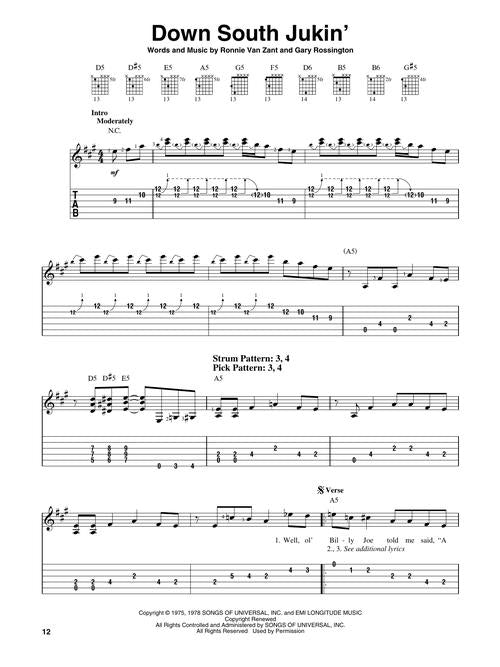15 Southern rock classics arranged at an easier level with tab. Includes: Call Me the Breeze · Don't Ask Me No Questions · Free Bird · Gimme Three Steps · Saturday Night Special · Simple Man · Sweet Home Alabama · That Smell · What's Your Name · and more.
