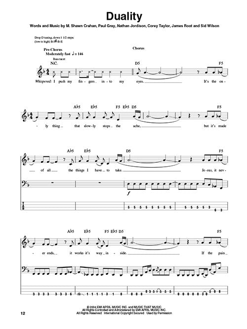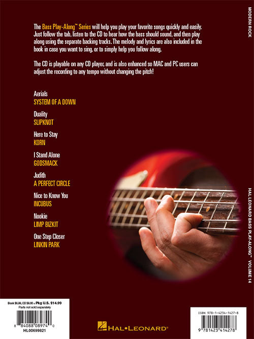 The Bass Play-Along series will help you play your favorite songs quickly and easily! Just follow the tab, listen to the CD to hear how the bass should sound, and then play along using the separate backing tracks. The melody and lyrics are included in the book in case you want to sing, or to simply help you follow along. The audio CD is playable on any CD player, and also enhanced so PC & Mac users can adjust the recording to any tempo without changing pitch! Songs: Aerials · Duality · Here to Stay · I Stand Alone · Judith · Nice to Know You · Nookie · One Step Closer.