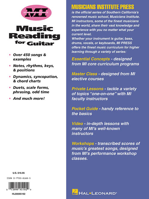 Starting at the elementary level and progressing to advanced techniques, this comprehensive method is like a complete two-year guitar course in book form. It includes over 450 songs and examples, and covers: notes, rhythms, keys, positions, dynamics, syncopation, chord charts, duets, scale forms, phrasing, odd time, and much more. Designed from an MI core curriculum program.