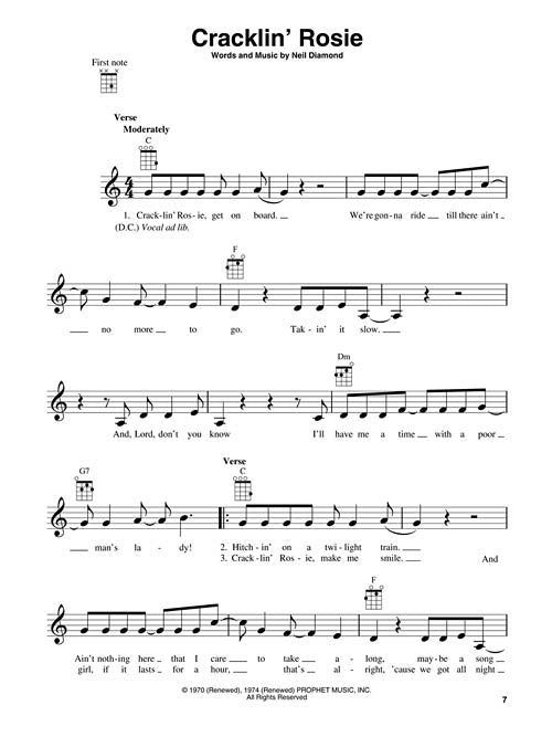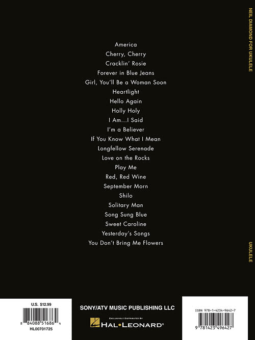 22 Diamond standards to enjoy on your uke, including: America · Cherry, Cherry · Cracklin' Rosie · Forever in Blue Jeans · Heartlight · Hello Again · Holly Holy · I'm a Believer · Love on the Rocks · Red, Red Wine · September Morn · Song Sung Blue · Sweet Caroline · and more.