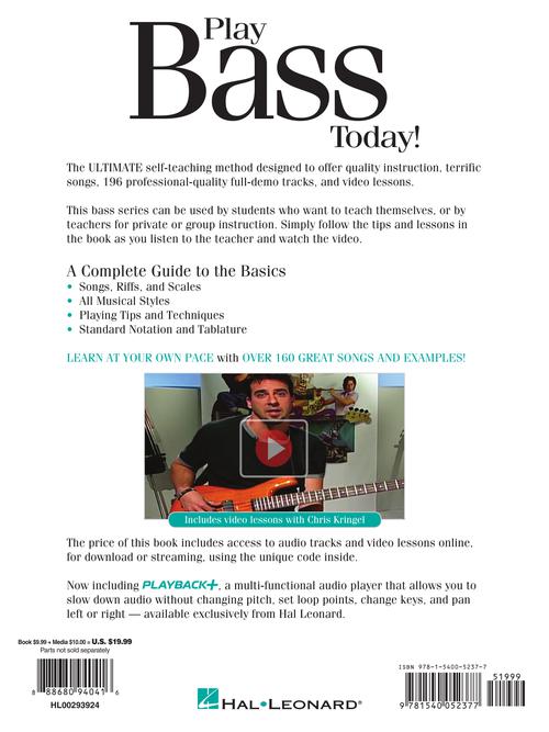 A $35 value for only $19.99! This budget-saving pack features all of the content from the Level 1 and 2 Play Bass Today! books as well as 196 professional-quality full-demo audio tracks and video lessons online for download or streaming. This bass series can be used by students who want to teach themselves, or by teachers for private or group instruction. Simply follow the tips and lessons in the book as you listen to the teacher and watch the video. Learn at your own pace with over 160 great songs and examples!