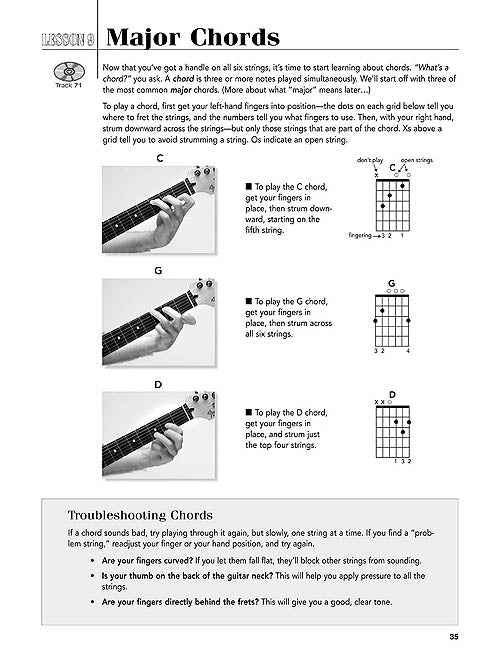 This method can be used by students who want to teach themselves, or by teachers for private or group instruction. It is a complete guide to the basics, designed to offer quality instruction, terrific songs, and professional-quality Online Audio with 99 full-demo tracks. Students can learn at their own pace and open the door to the world of guitar music! This method covers: songs, chords and riffs; picking and strumming; playing tips and techniques; standard notation and tablature; and over 80 great songs and examples! The audio is accessed online using the unique code inside each book and can be streamed or downloaded. The audio files include PLAYBACK+, a multi-functional audio player that allows you to slow down audio without changing pitch, set loop points, change keys, and pan left or right.