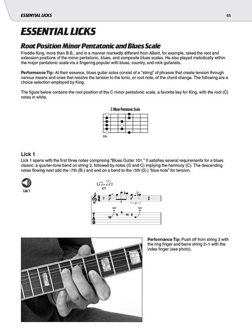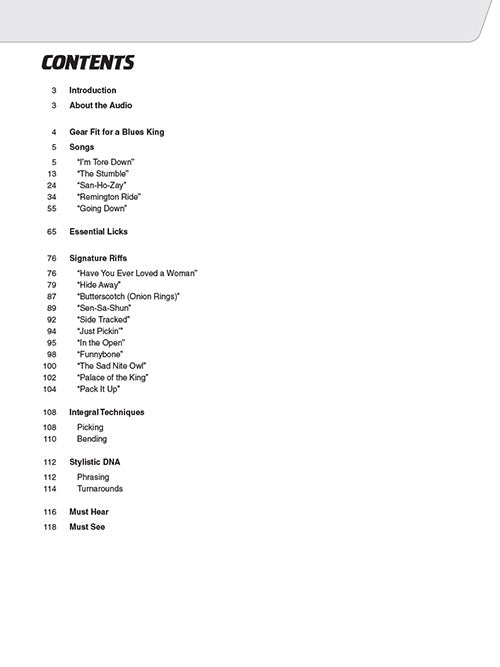 Study the trademark songs, licks, tones, and techniques of blues guitar royal, Freddie King. This comprehensive book and audio teaching method provides detailed analysis of King's gear, tone, techniques, styles, songs, licks, riffs, and much more. You'll learn everything you need to know about Freddie's legendary guitar playing, from his early '60s guitar instrumental hits to his '70s blues-funk excursions and beyond. The book includes access to audio tracks online, for download or streaming, using the unique code inside the book! Including PLAYBACK+, a multi-functional audio player that allows you to slow down audio without changing pitch, set loop points, change keys, pan left or right. Songs include: Going Down · I'm Tore Down · Remington Ride · San-Ho-Zay · The Stumble · and more.