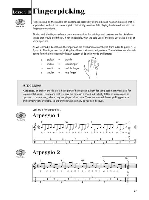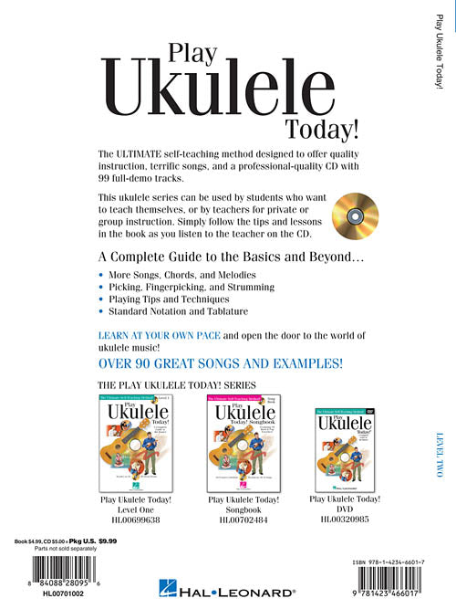Learn at your own pace and open the door to the world of ukulele music! This second level book picks up where Level One left off and includes over 90 more great songs and examples. Topics covered include: picking, fingerpicking and strumming · playing tips and techniques · standard notation and tablature. The price of this book includes access to audio tracks online, for download or streaming, using the unique code inside the book. Now including PLAYBACK+, a multi-functional audio player that allows you to slow down audio without changing pitch, set loop points, change keys, and pan left or right - available exclusively from Hal Leonard.