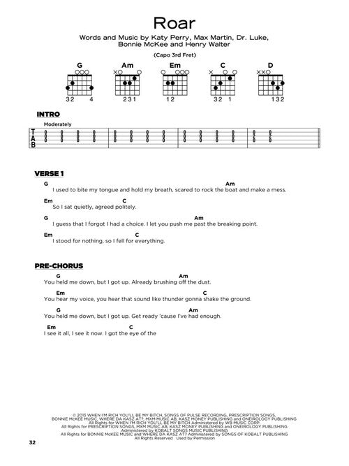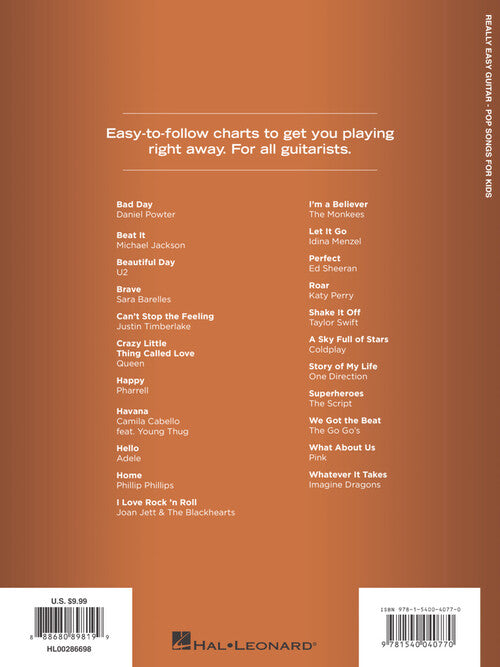 Easy-to-follow charts to get you playing right away are presented in this collection for all guitarists. Includes 22 songs in chords, lyrics and basic tab: Brave · Can't Stop the Feeling · Happy · I Love Rock 'N Roll · Let It Go · Roar · Shake It Off · We Got the Beat · and more.