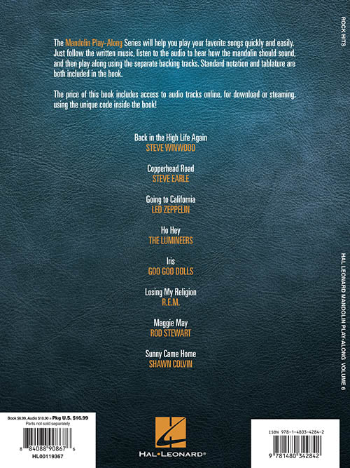 The Mandolin Play-Along Series will help you play your favorite songs quickly and easily. Just follow the written music, listen to the demo tracks to hear how the mandolin should sound, and then play along using the separate backing tracks. Standard notation and tablature are both included in the book. Includes online audio tracks for download or streaming. Songs include: Back in the High Life Again · Copperhead Road · Going to California · Ho Hey · Iris · Losing My Religion · Maggie May · Sunny Came Home.