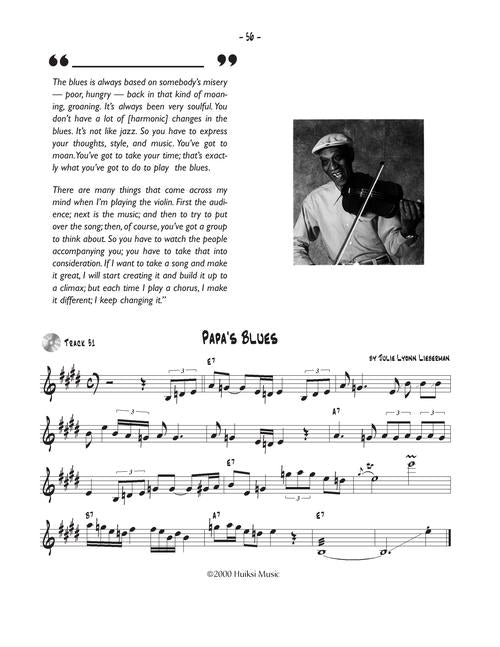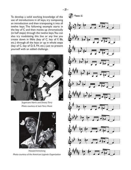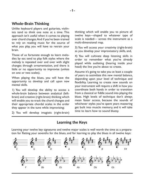 The blues is an incredibly powerful form of music that creates an environment within which you, the soloist, can improvise easily and expressively. This one-of-a-kind book for violinists and fiddlers with its supportive practice tracks on iTunes will provide you with technical, musical and stylistic tips designed to activate your imagination, fine-tune your right- and left-hand touch, and help you develop a uniquely individual sound. Includes 17 solos to demonstrate the styles of great blues fiddlers, with bios on each. Now in its 5th edition! Blues Fiddle presents an excellent introduction to the often overlooked art form of blues fiddling. - Frets Magazine A complete and well thought out book ... a very fine and comprehensive work. -JAZZ STRING NEWSLETTER A first of its kind in the literature, a well-researched text which covers the history of the blues fiddle. -THE MONTCLAIR TIMES A highly informative, historical anthology of the Art of Bluesing. -AMERICAN STRING TEACHER MAGAZINE