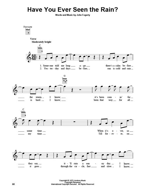 50 favorites for standard G-C-E-A ukulele tuning, including: All Along the Watchtower · Burning House · Can't Help Falling in Love · Don't Worry, Be Happy · Folsom Prison Blues · Ho Hey · I'm Yours · King of the Road · Lava · Rude · Stand by Me · Sweet Home Alabama · You Are My Sunshine · and more.
