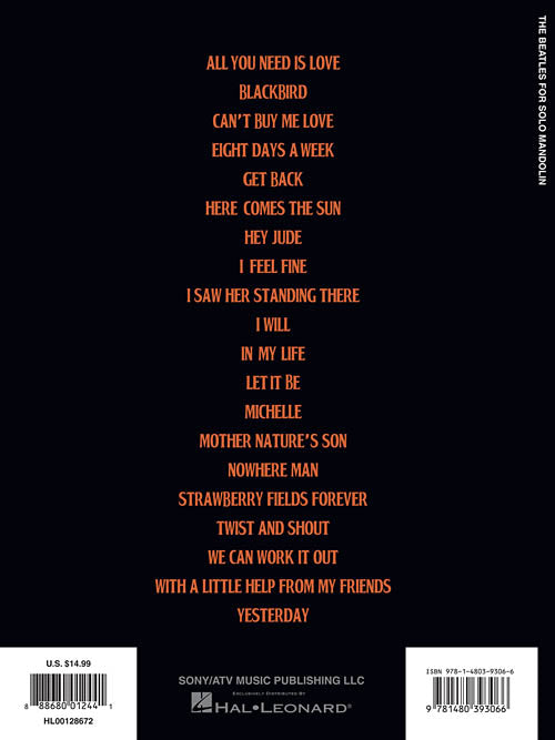 Named one of the Best Mandolin Books of All Time by BookAuthority.org! 20 favorite Beatles tunes in chord melody arrangements for mandolin including: All You Need Is Love · Blackbird · Can't Buy Me Love · Eight Days a Week · Here Comes the Sun · Hey Jude · In My Life · Let It Be · Michelle · Strawberry Fields Forever · Twist and Shout · We Can Work It Out · Yesterday · and more.
