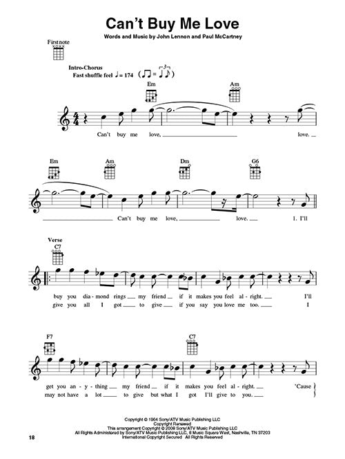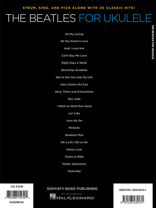 Ukulele players can strum, sing and pick along with 20 Beatles classics! Includes: All You Need Is Love · Eight Days a Week · Good Day Sunshine · Here, There and Everywhere · Let It Be · Love Me Do · Penny Lane · Yesterday · and more.