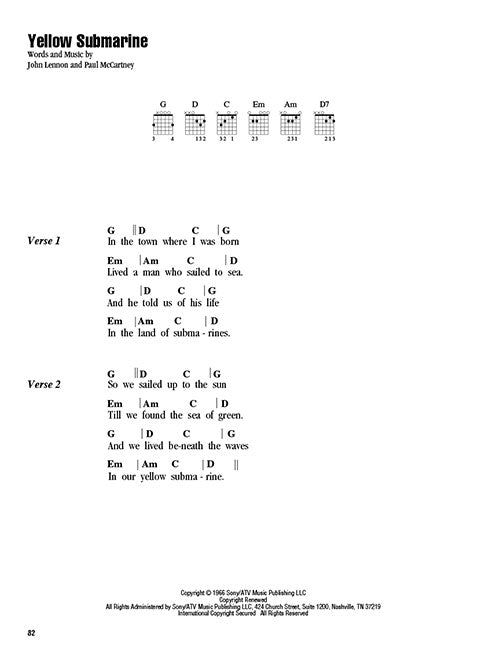 40 classics from John, Paul, George & Ringo are presented in this collection featuring lyrics, chord symbols and guitar chord diagrams. Songs include: All You Need Is Love · Blackbird · Can't Buy Me Love · Day Tripper · Eleanor Rigby · The Fool on the Hill · Good Day Sunshine · A Hard Day's Night · I Saw Her Standing There · Let It Be · Lucy in the Sky with Diamonds · Michelle · Norwegian Wood (This Bird Has Flown) · Ob-La-Di, Ob-La-Da · Penny Lane · She Loves You · Ticket to Ride · When I'm Sixty-Four · Yellow Submarine · and more.