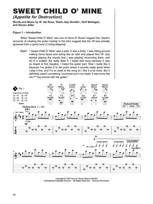 Slash's guitar style is meticulously analyzed and presented for you to learn in these audio-equipped Signature Licks lessons. Learn his techniques from: Civil War · Don't Cry · Garden of Eden · Nightrain · Paradise City · Patience · Sweet Child O' Mine · Welcome to the Jungle · Yesterdays · You Could Be Mine. The price of this book also includes access to online recordings of the samples in the book with playback tools so you can loop or slow down the parts you're working on.