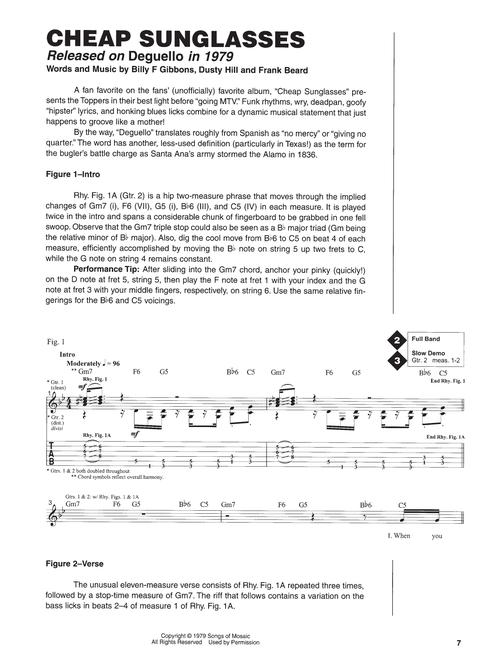 Learn the trademark riffs and solos of the famed Texas trio with this book/audio pack. Author and guitar expert Dave Rubin examines in detail a dozen of ZZ Top's biggest hits, providing thorough analysis, helpful lessons and recorded demonstrations. Songs: Cheap Sunglasses · Francine · Gimme All Your Lovin' · I Thank You · Jesus Just Left Chicago · La Grange · Legs · Sharp Dressed Man · Sleeping Bag · Stages · Tube Snake Boogie · Tush. Includes an introduction and notes on Billy Gibbons' gear. Audio is accessed online using the unique code inside the book and can be streamed or downloaded. The audio files include PLAYBACK+, a multi-functional audio player that allows you to slow down audio without changing pitch, set loop points, change keys, and pan left or right.