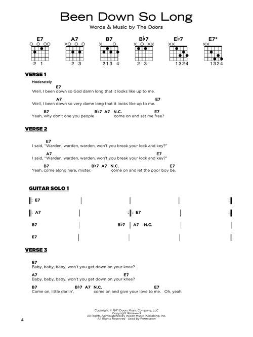 Easy-to-follow charts to get you playing right away are presented in this collection for all guitarists. Includes 22 songs in chords, lyrics and basic tab: Break on Through to the Other Side · Hello, I Love You (Won't You Tell Me Your Name?) · L.A. Woman · Light My Fire · Love Her Madly · People Are Strange · Riders on the Storm · Touch Me · Wild Child · and more.