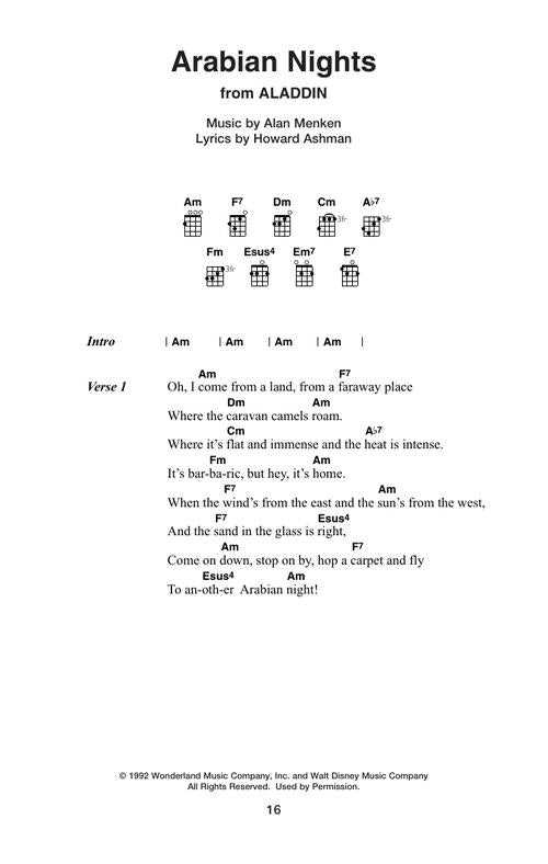 This classy little collection packs a big punch with complete lyrics and chords for nearly 90 Disney favorites! Presented in chord songbook format with ukulele chord boxes and complete lyrics. Includes songs from Disney's entire catalog, from 101 Dalmatians and Mary Poppins to Encanto and Moana! Songs include: Almost There · Be Our Guest · Breaking Free · Can You Feel the Love Tonight · Chim Chim Cher-ee · Colors of the Wind · Do You Want to Build a Snowman? · Evermore · Hakuna Matata · How Far I'll Go · I See the Light · I'm Late · Into the Unknown · Let It Go · Reflection · Remember Me (Ernesto de la Cruz) · A Spoonful of Sugar · Strong · Supercalifragilisticexpialidocious · That's How You Know · Touch the Sky · Under the Sea · We Don't Talk About Bruno · When She Loved Me · A Whole New World · The World Es Mi Familia · You've Got a Friend in Me · and more.