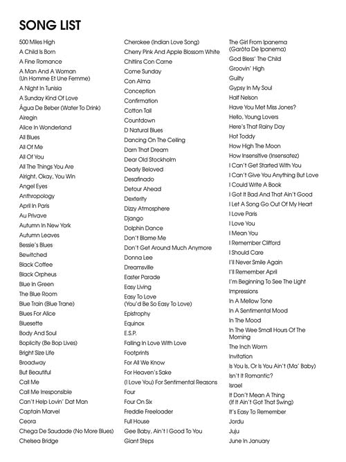 This USB stick includes backing tracks for 240 songs from The Real Book Volume 1 so you can play along with a real rhythm section (piano, bass and drums) professionally recorded for these products.