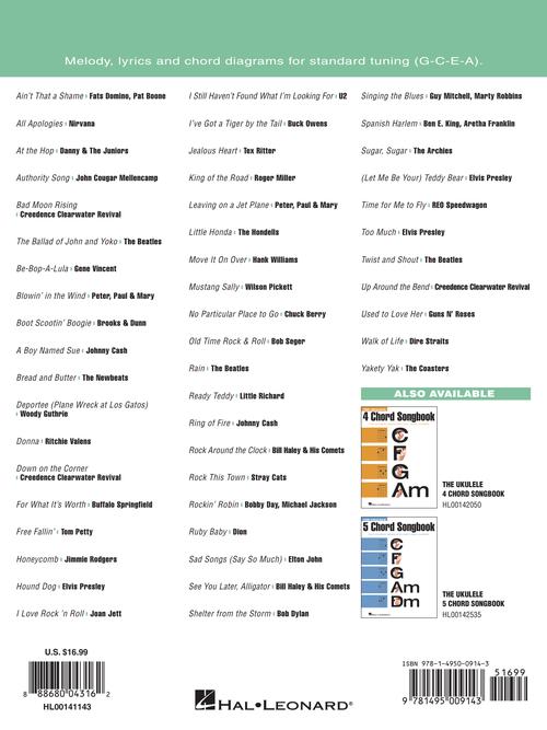 If you know three chords, you can play these 50 great hits! Songs include: Bad Moon Rising · A Boy Named Sue · Free Fallin' · Hound Dog · King of the Road · Leaving on a Jet Plane · Mustang Sally · Rock Around the Clock · Shelter from the Storm · Time for Me to Fly · Twist and Shout · and many more.