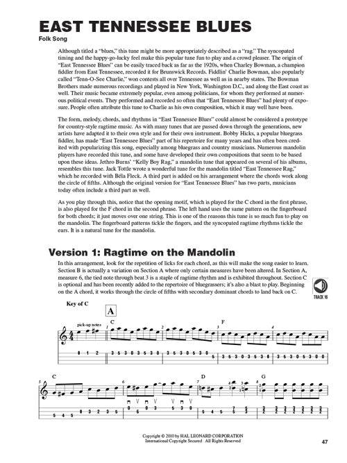 The Ultimate Mandolin Songbook contains multiple versions varying in difficulty of 26 of the most popular songs from bluegrass, jazz, ragtime, rock, pop, gospel, swing and other genres, in both standard notation and mandolin tab. The songs are arranged by Janet Davis to appeal to players of all levels, and the audio features her performing demos for listening and playing along. Arrangements in the book feature alternate licks, endings, segues and turnarounds for improvising. Picking styles include: tremolo, Monroe style, fiddle style, double stops, crosspicking, triplet style, jazz style and more. The songs are in various tunings and keys, and the lyrics and history are included for each. Songs: Alabama Jubilee · Autumn Leaves · The Entertainer · Great Balls of Fire · How Great Thou Art · Limehouse Blues · Orange Blossom Special · Rawhide · Stardust · Tennessee Waltz · Yesterday · You Are My Sunshine · and more! Audio is accessed online for download or streaming and features PLAYBACK+ tools such as looping, tempo adjustment, and more.