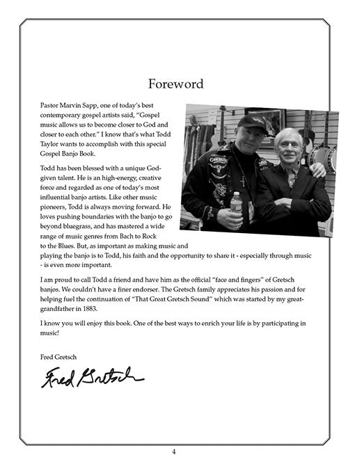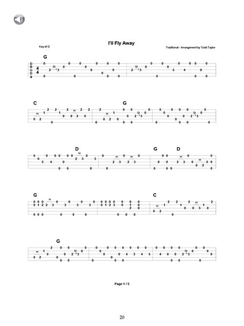 This book features ten exciting arrangements of favorite gospel classics by virtuoso Todd Banjoman Taylor. Just follow the easy tab, listen to the audio and play along with Todd quickly and easily! Songs include: Amazing Grace · How Great Thou Art · Uncloudy Day · What a Friend We Have in Jesus · When the Roll Is Called Up Yonder · I'll Fly Away · and more. The audio is accessed online using the unique code inside each book and can be streamed or downloaded. The audio files include PLAYBACK+, a multi-functional audio player that allows you to slow down audio without changing pitch, set loop points, change keys, and pan left or right.