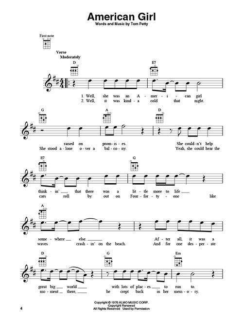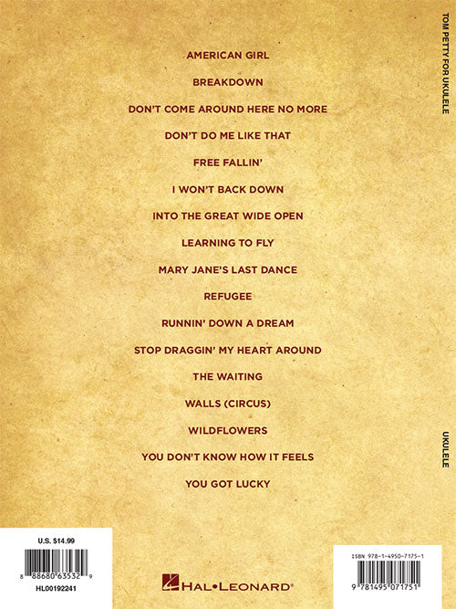Get ready to strum, sing and pick along with 17 Tom Petty tunes! Includes: American Girl · Breakdown · Don't Come Around Here No More · Don't Do Me Like That · Free Fallin' · I Won't Back Down · Into the Great Wide Open · Learning to Fly · Mary Jane's Last Dance · Runnin' Down a Dream · Stop Draggin' My Heart Around · Wildflowers · You Don't Know How It Feels · and more.