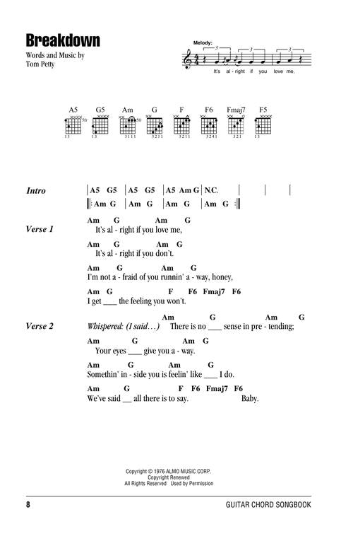 40 of Petty's finest in one compact collection giving you just the basics you need to sing and strum. Includes: American Girl · Breakdown · Don't Come Around Here No More · Don't Do Me like That · Even the Losers · Free Fallin' · Here Comes My Girl · Into the Great Wide Open · Mary Jane's Last Dance · Refugee · Runnin' Down a Dream · Stop Draggin' My Heart Around · The Waiting · You Got Lucky · and more. 6 inch. x 9 inch.