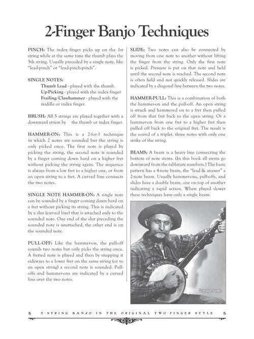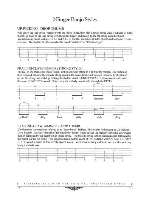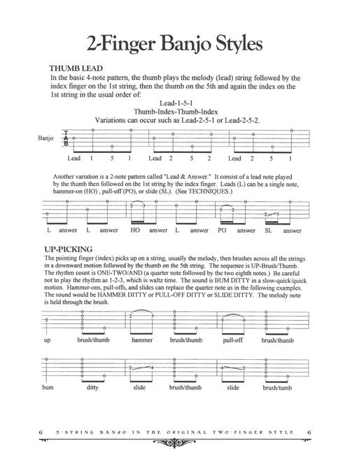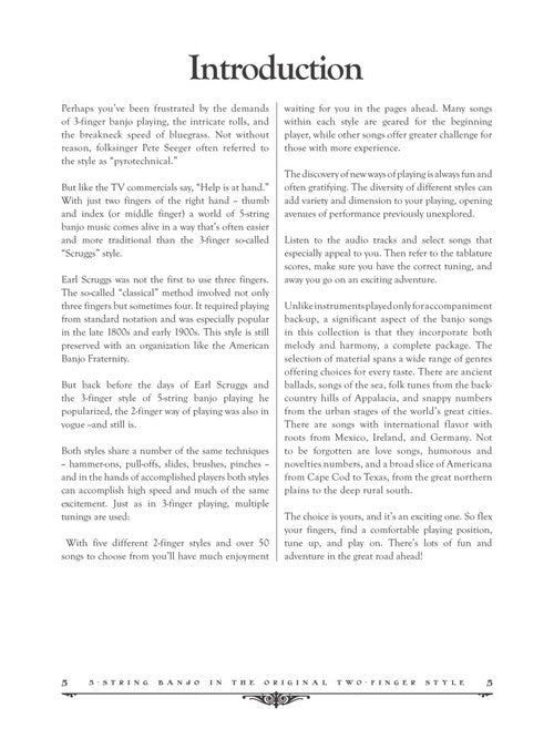All it takes is the thumb and index finger! This book allows you to explore this traditional, often easier way of playing the banjo: the original two-finger style. It covers thumb lead, up-picking, frailing/clawhammer (stroke style), and drop-thumb variation techniques and is presented in various tunings with easy to read tablature plus accompanying chord symbols and diagrams with audio tracks online for download or streaming. Includes over 50 songs in the bluegrass, old-time, country, folk and gospel styles. Audio is accessed online using the unique code inside the book and can be streamed or downloaded. The audio files include PLAYBACK+, a multi-functional audio player that allows you to slow down audio without changing pitch, set loop points, change keys, and pan left or right.