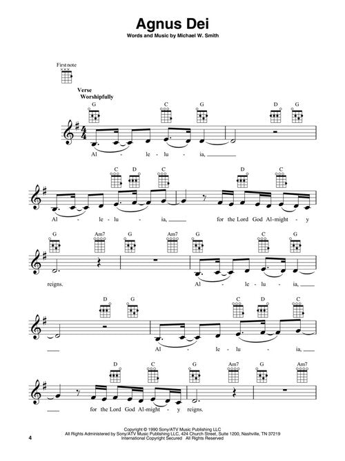 25 Christian favorites to strum and sing on the uke, including: As the Deer · Better Is One Day · Draw Me Close · Glorify Thy Name · He Is Exalted · I Could Sing of Your Love Forever · Lamb of God · Shine, Jesus, Shine · There Is a Redeemer · and more.