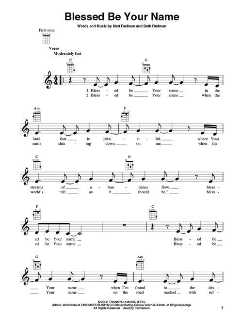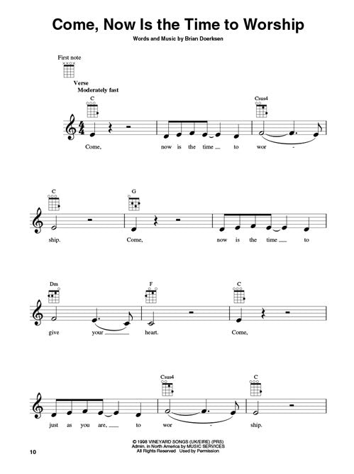 25 church favorites arranged for uke, including: Amazing Grace (My Chains Are Gone) · Blessed Be Your Name · Come, Now Is the Time to Worship · Everyday · God of Wonders · Here I Am to Worship · How Great Is Our God · Lord, I Lift Your Name on High · Mighty to Save · Open the Eyes of My Heart · Sing to the King · We Fall Down · You Are My King (Amazing Love) · You're Worthy of My Praise · and more.