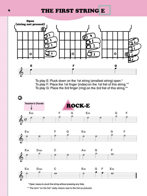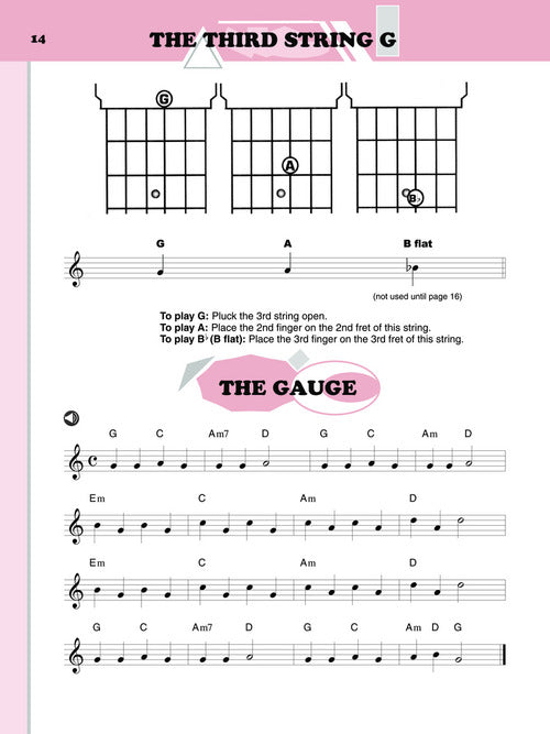 A guitar method by Dave Clo that starts simply and gradually increases in difficulty. Students will enjoy the original songs. Plus, the authentic-sounding audio tracks online will make the student feel like they've just joined a band!